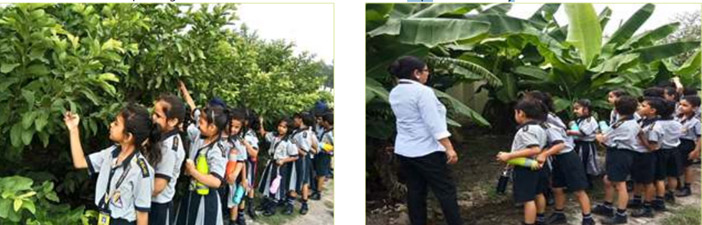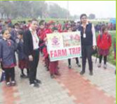 As a part of farm visit and an agro-eco tourism venture a group of about 150 students of standard rst accompanied by their teachers and supporting staff visited G S Foundation for Research, Education and Development Centre near Kachhwa today (30 Sept, 2019) in the morning. The visiting students had the opportunity to see all kind of rabi crops, vegetables, fruits, aromatic and medicinal plants grown at the research station. They also interacted with the animals particularly goats, poultry, rabbits, ducks, dairy animals and mare kept at the farm as a part of an integrated farming system model to double farmers income. The Chairman demonstrated the functioning of gobar gas plant established for generating cooking gas for domestic use and slury for application in the eld to improve soil fertility.